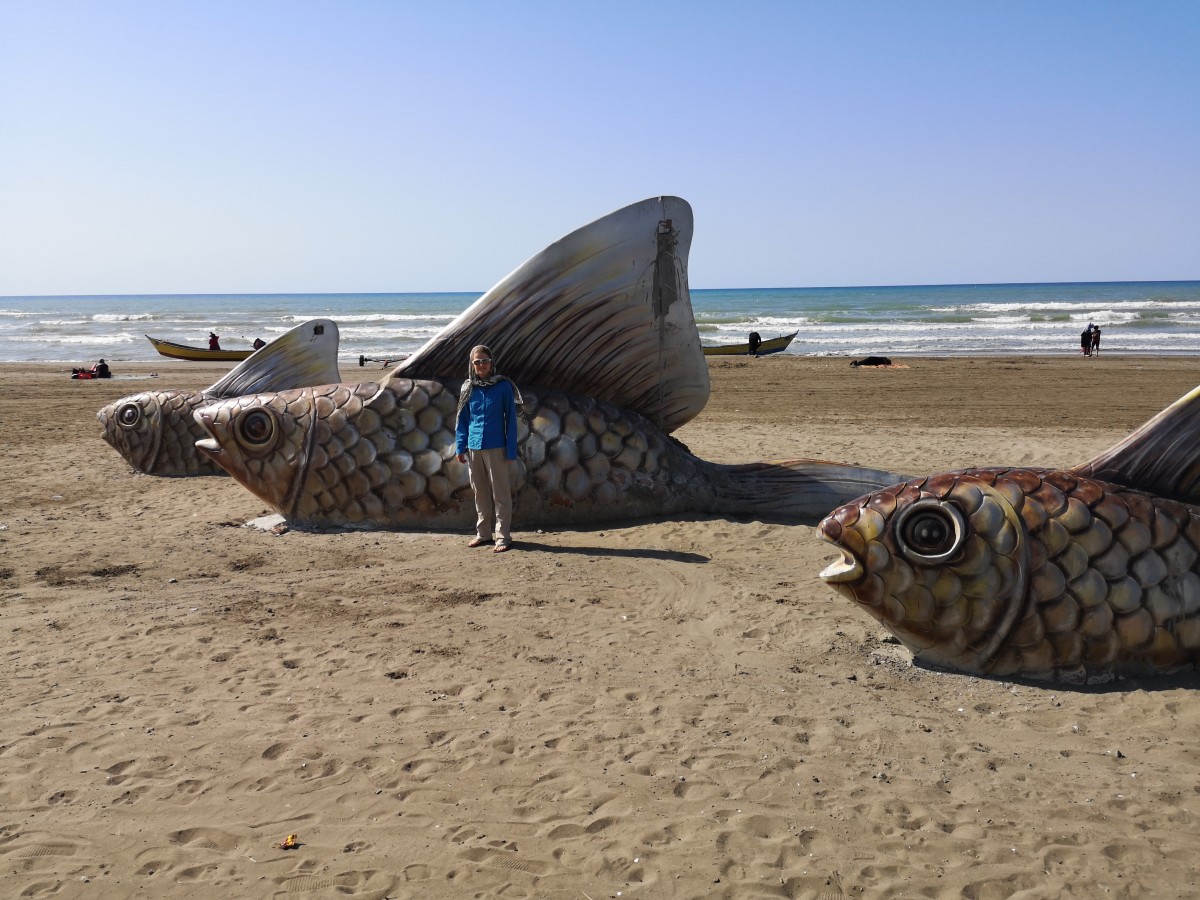 Nach Bezug der Hotelzimmer im Share Ghesseh Hotel in Maahmoud-Abad machen wir uns an einen Strandspaziergang - natürlich ist dabei meine Frau mit langen