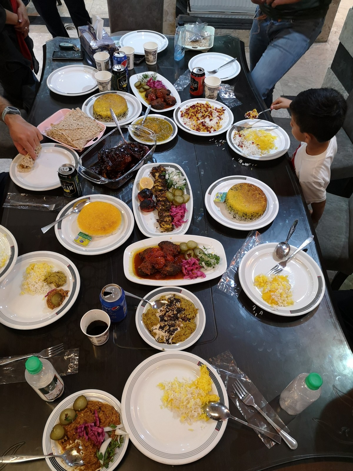 Wir hingegen gehen nochmal aus und werden in einem netten Restaurant mit einem Tisch voller Köstlichkeiten bewirtet. Die persische Küche ist unvergeßlich!