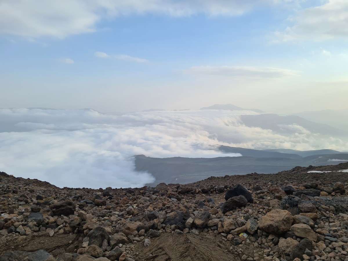 ...beziehungsweise einer davon auch auf über 5600 Meter: Unser nächstes Gipfelziel ist der Damavand. Der höchste Berg Irans ist ein erloschener Vulkan und überragt