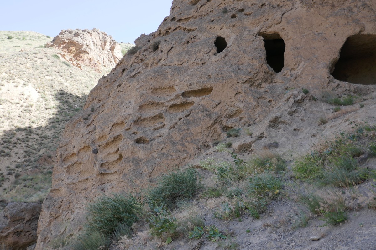 Der Anblick der Höhlenfenster von außen erinnert mich an die Höhlen von Tsaparang in West-Tibet, und ein wenig auch an die Gräber von Petra in Jordanien.