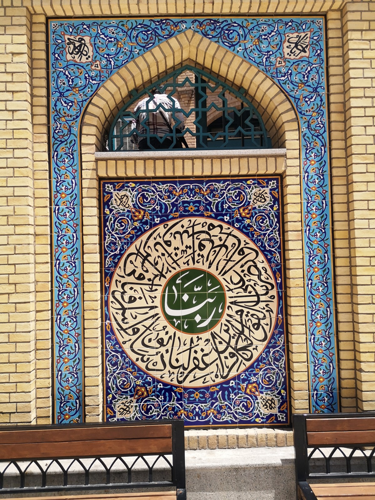 Auch der die Moschee umgebende Hof ist mit Fliesen-Kalligraphien reich geschmückt.