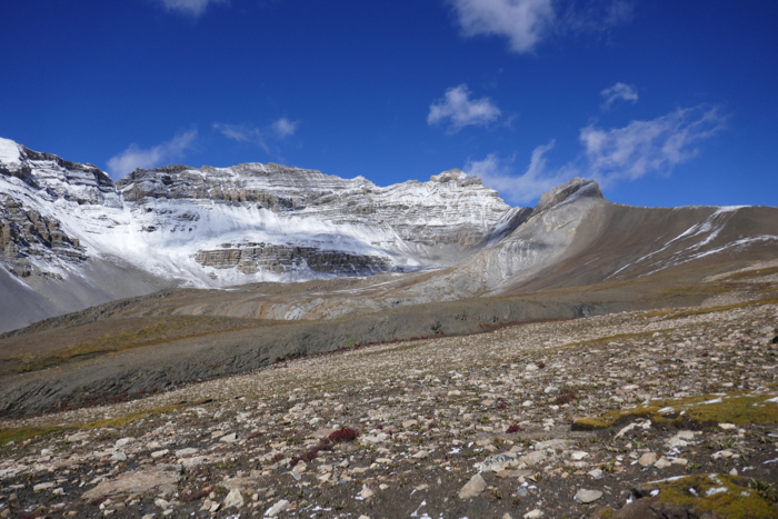 Kurz nach dem Frühstück reißt das bislang eher bewölkte Wetter auf, und wir können bei Sonnenschein das letzte Wegstück bis zum 5220 Hm hohen Jyanta La zurücklegen.