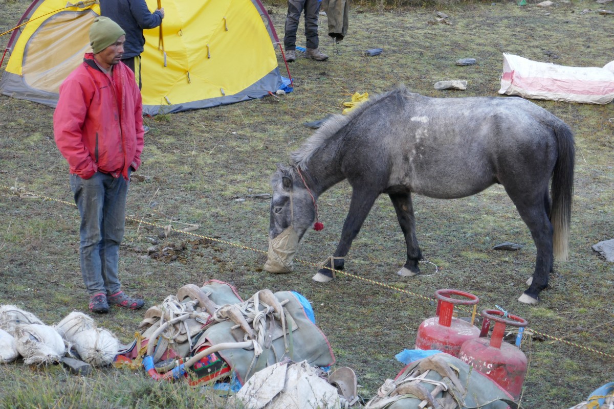 Zunächst haben wir aber eine durchaus frische Nacht im Lager auf etwa 4000m. Am nächsten Morgen sind die Zelte im Schatten und überreift, und der Weg zum