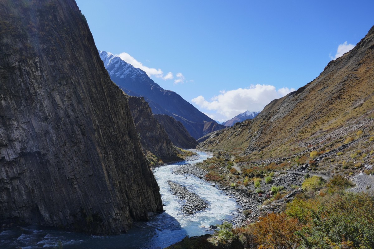 Chharkabot ist nun bereits links im Tal verschwunden; wir überblicken eine weite Gebirgslandschaft.