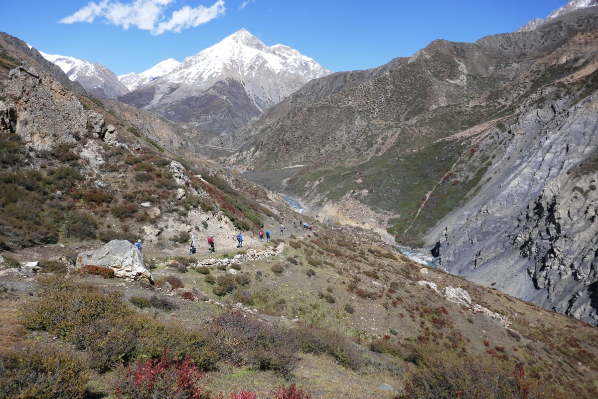 Kurz vor unserem nächsten Lager, welches idyllisch am Zusammenfluß der zwei Seitentäler Pari Yaklung Khola von rechts und