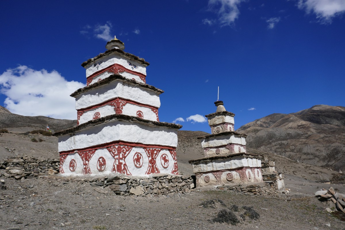 Bald kommen wir an hübschen Chörten vorbei - nun kann es nicht mehr weit sein.
