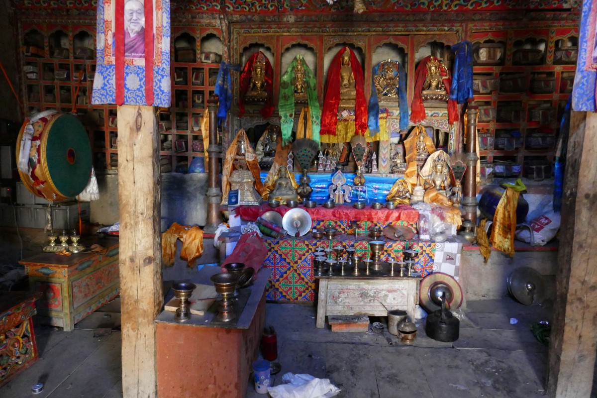 Wir schauen noch kurz in der örtlichen Gompa vorbei. Das kleine aber hübsche Gebäude enthält alles, was für eine Gompa