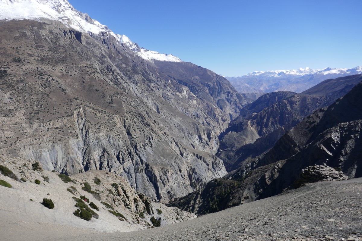 Nach Osten sehen wir den Thorong La ein, über den wir vor elf Jahren die Annapurna-Runde gegangen waren. Auch dieser Paß