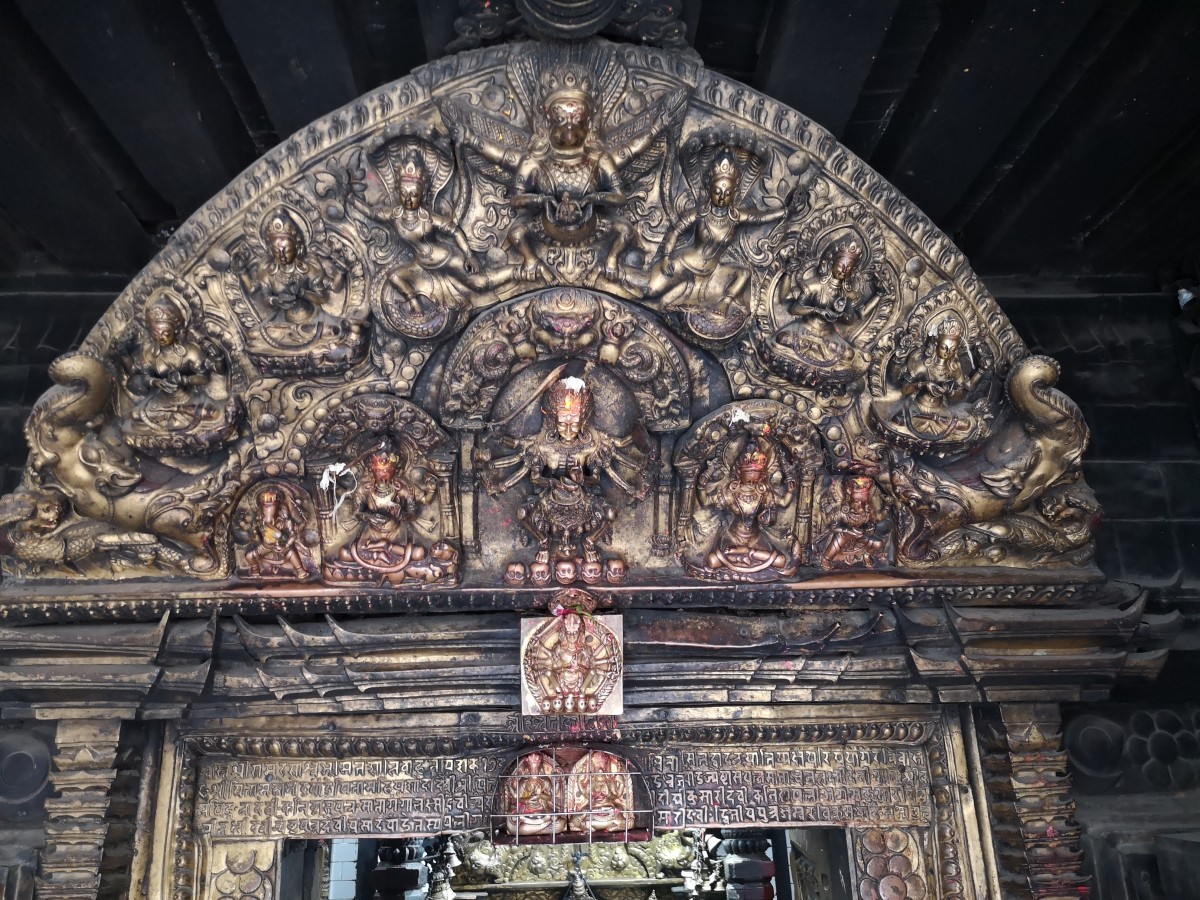 Endlich - am nördlichen Eingang zum Durbar Square hält der Khal Bhairab Wache. Vor diesem Schutzdämon wäre jede Lüge eine kapitale Sünde und hätte bittere