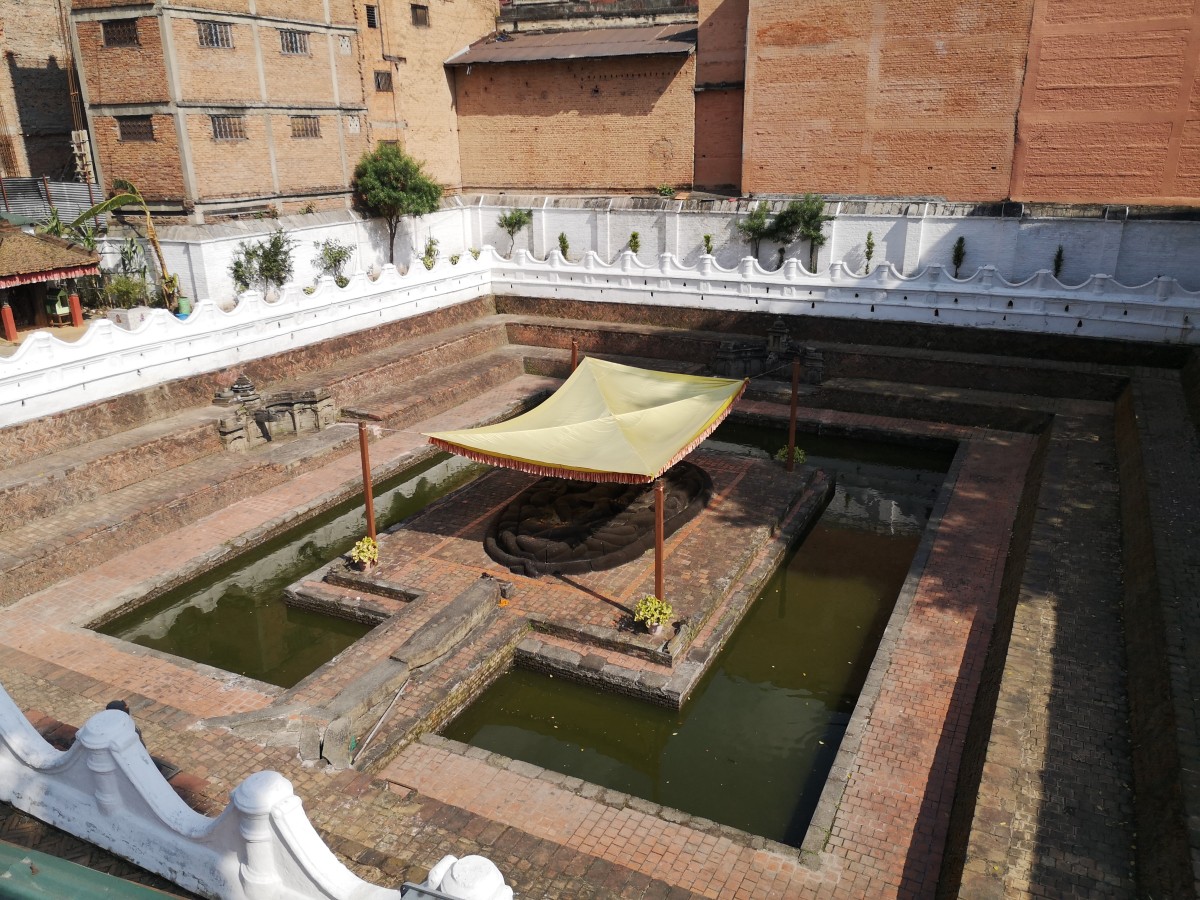 Am Shree Gha Innenhof kommen wir an einer Stupa vorbei - Boudhnath in klein!