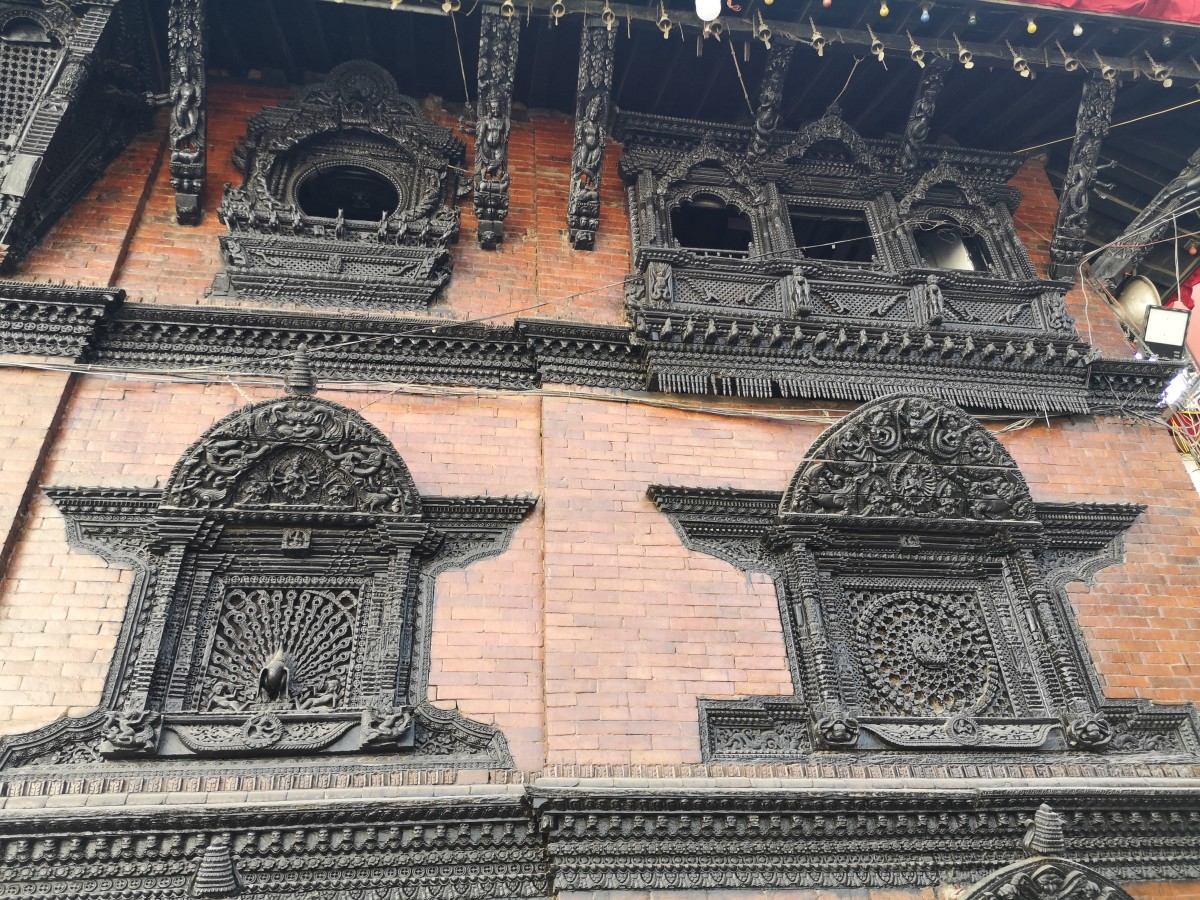 Der wohl bekannteste Balkon Nepals - nämlich jener am Haus der lebenden Kindgottheit Kumari.
