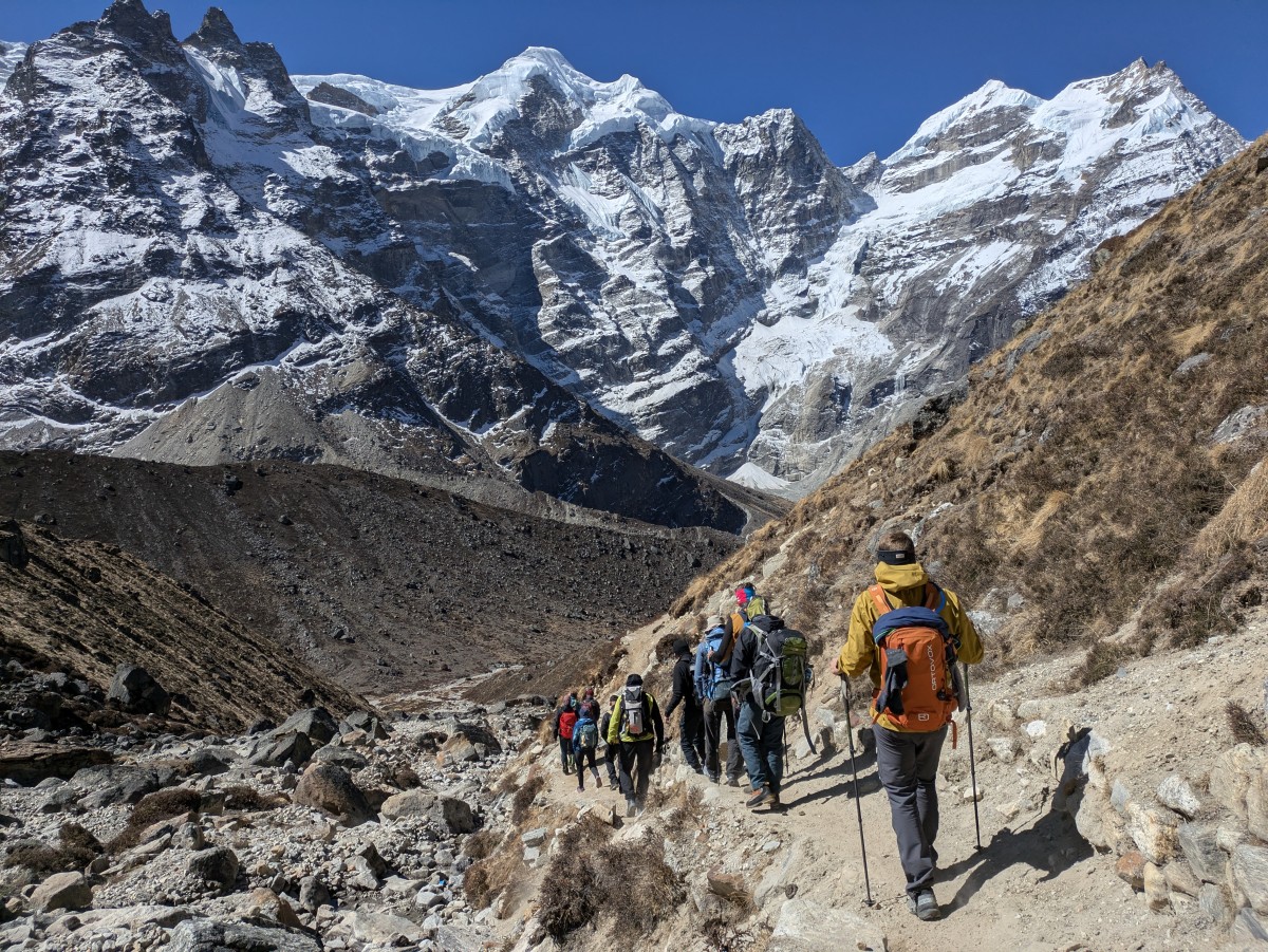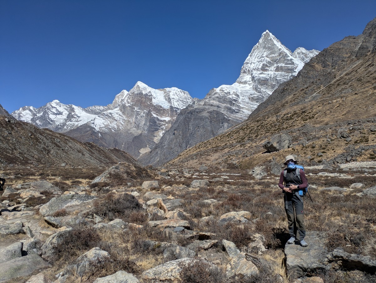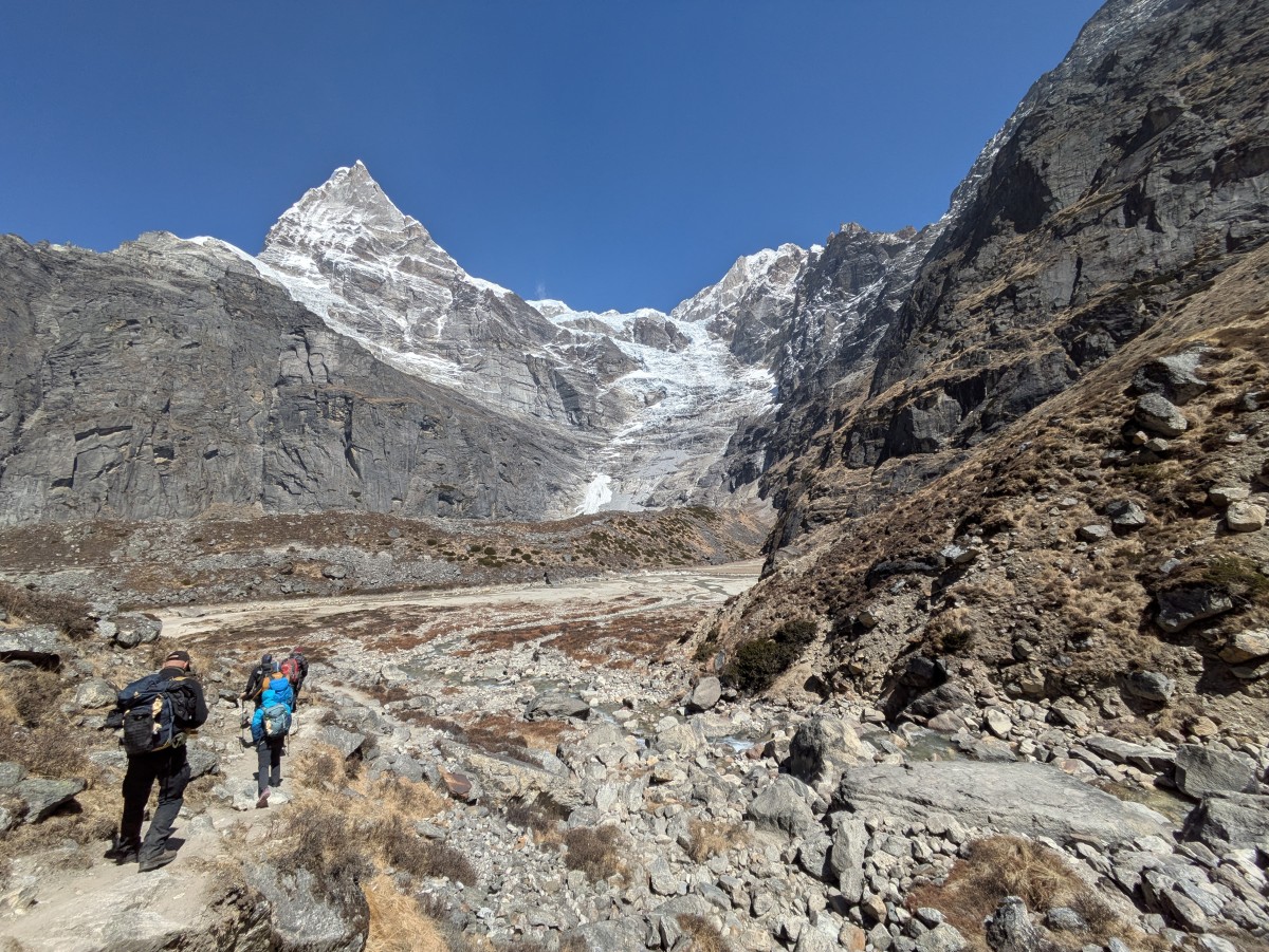 Am nächsten Tag machen wir uns bei besten Bedingungen von Khare aus auf den Rückweg. Wie nach solchen Gipfeltagen üblich stellt sich bei mir