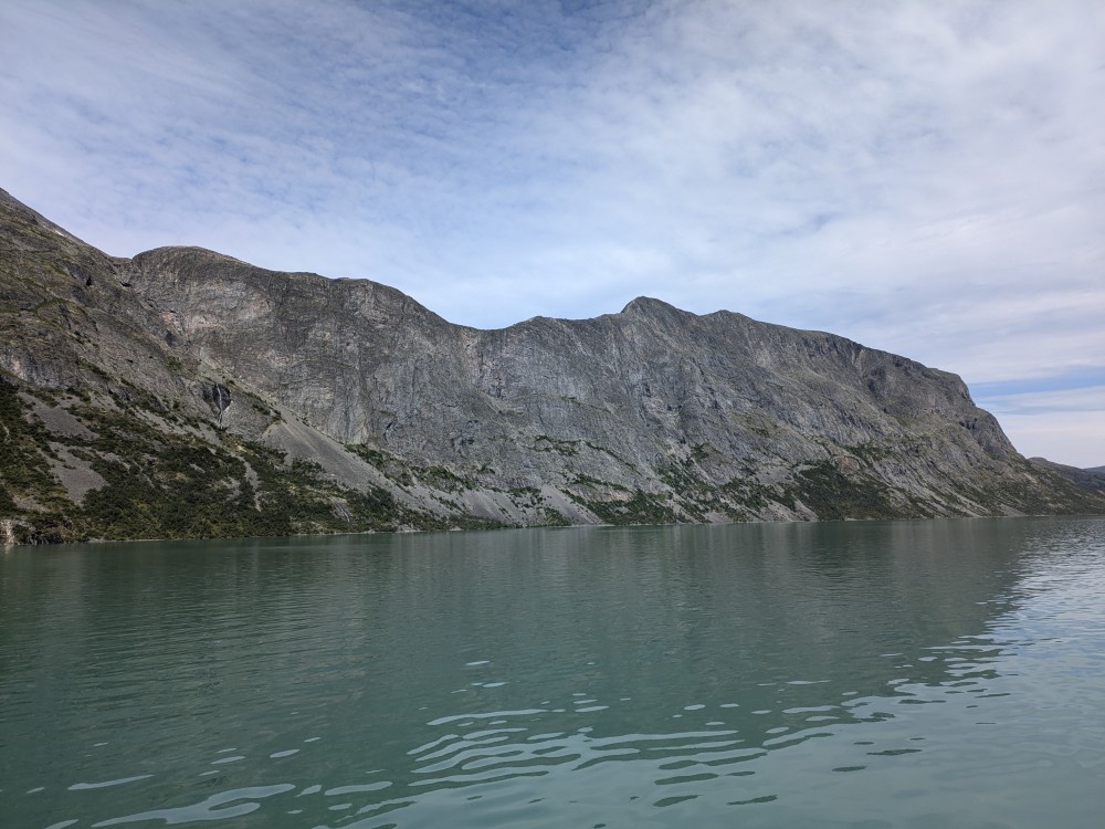 auf der Bootsfahrt noch einmal von unten zum Grat hinaufschauen, den wir am Vormittag zurückgelegt haben. Eine wirklich spezielle