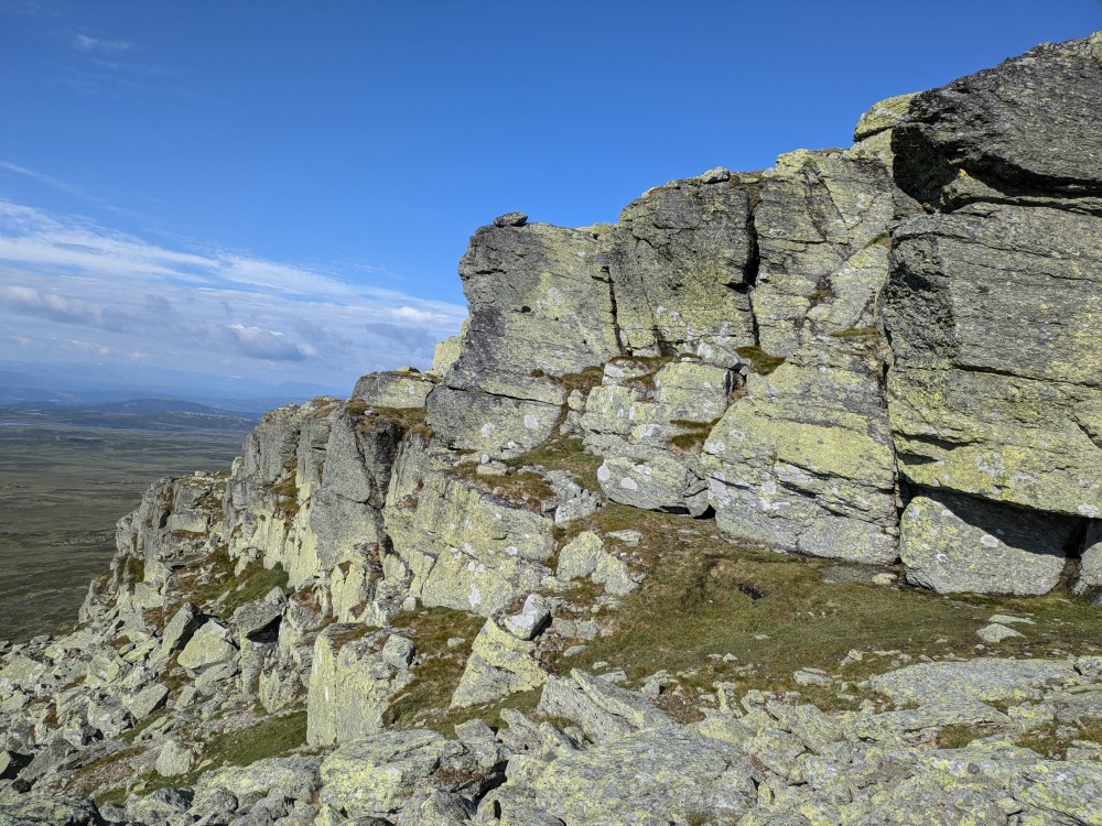 Bald schon können wir vom breiten Rücken zum Veslfjellet aus nach links in die Tiefe starren.