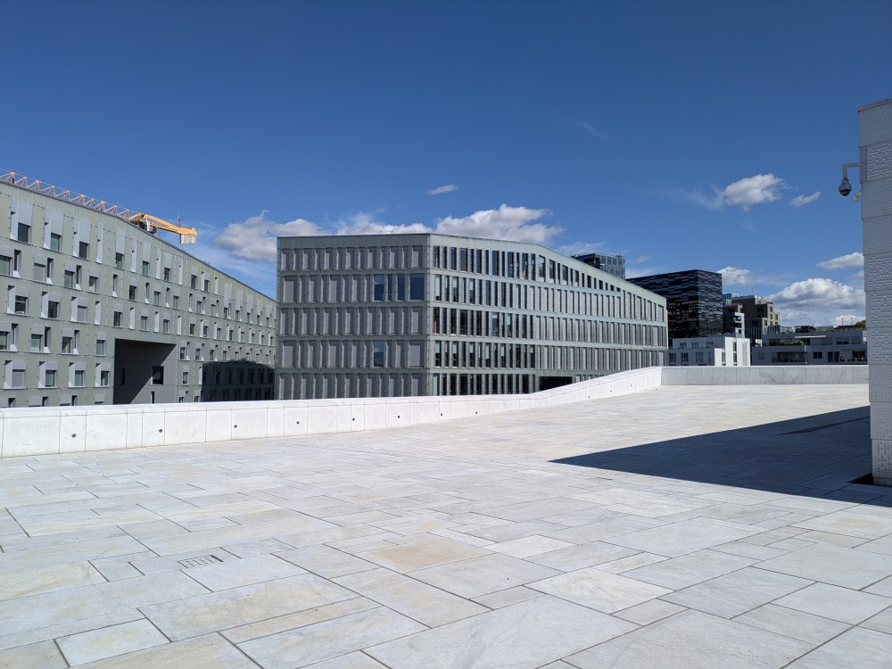 Auf der Osloer Oper. Nach Wochen in der wunderschönen Natur ist dieses Bild ein wirklich starker Kontrast...