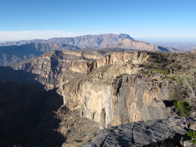 Der Weg verläuft an einer der größten Schluchten des Oman, die durchaus Erinnerungen an den Grand Canyon wach werden läßt.