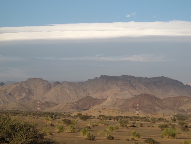 Jebel Misht steht wie ein Schiffsbug in der Landschaft.