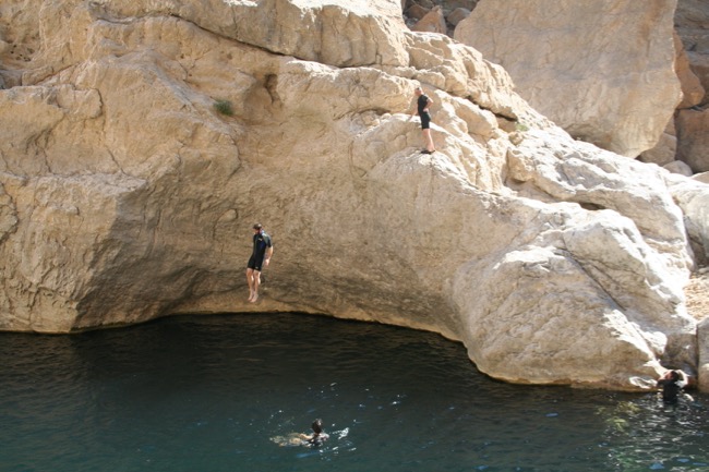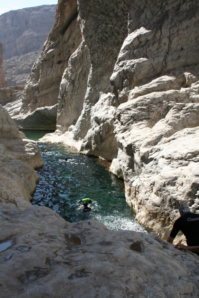 weiteres Highlight der Tour: Das Schwimmtrekking durch das Wadi Bani Khalid. Mit Neoprenanzügen