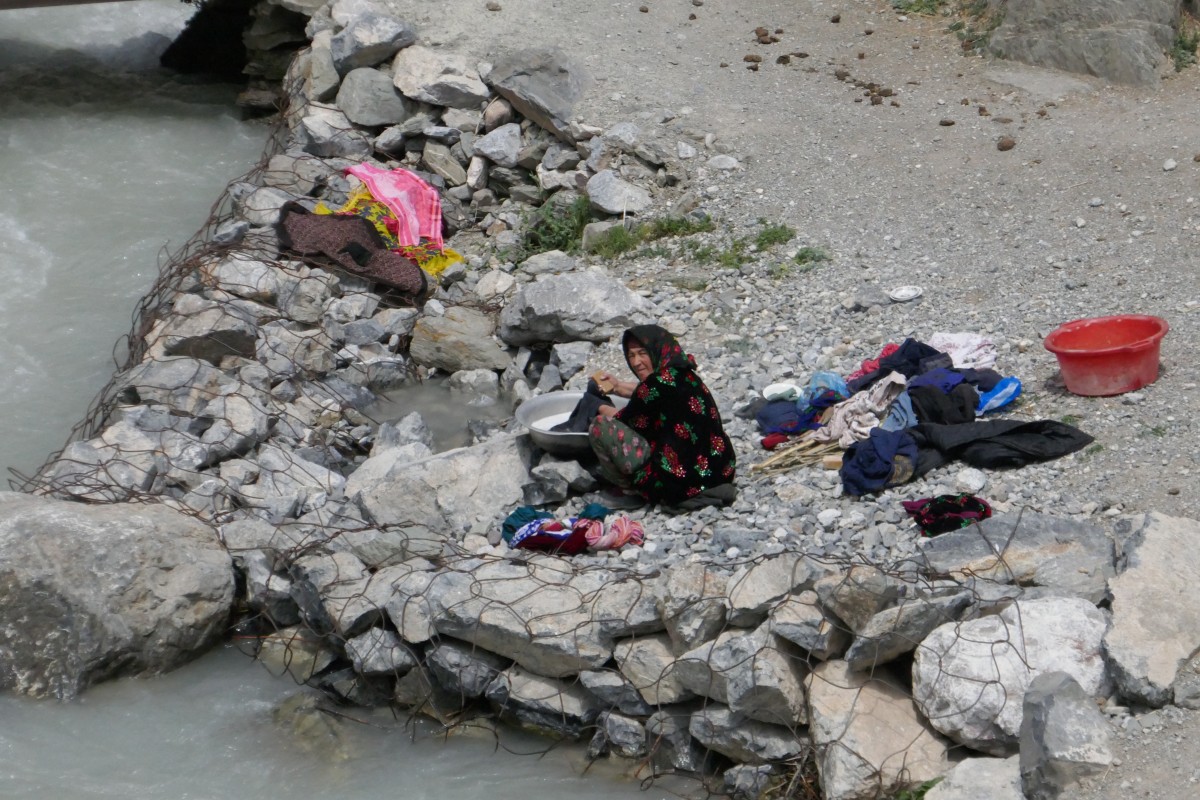 Wäschewaschen am Fluß