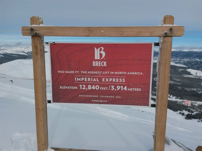 In Breckenridge findet sich dem Schild nach auch der höchste Lift in Nordamerika. Vom Ausstieg des Imperial Express steigen die meisten Passagiere zu Fuß noch ein paar Höhenmeter weiter auf und die Grate entlang weiter - von dort geht es in zahllosen Varianten über unpräpariertes Gelände wieder hinunter zur Baumgrenze und den präparierten Pisten. Das Fahren in diesem Backcountry ist im Gegensatz zu den europäischen Gebieten, die ich kenne, offiziell erlaubt und stellt einen ganz besonderen Reiz dar.
