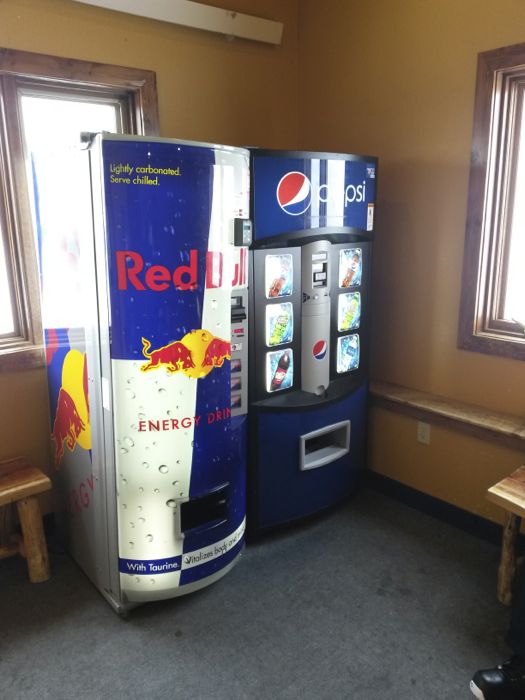 Das Lob kaum ausgesprochen hier der Dämpfer: In der Hütte findet man die unvermeidlichen Automaten mit eisgekühlten Soft- und Energydrinks...