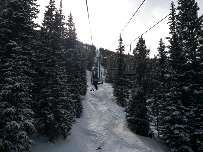 Der E-Chair Zweier-Sessellift in Breckenridge - ohne Fußrasten.