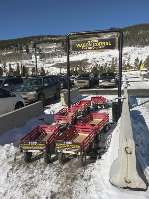 Nette Idee: Mit den Wägen kann man seine Ausrüstung vom Lift zum Auto transportieren.