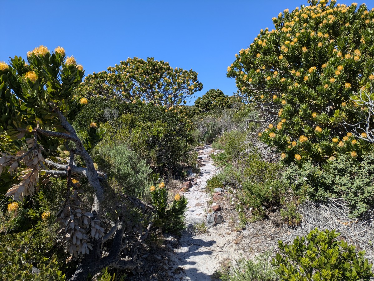 Nun steht eine Wanderung zum Kap der Guten Hoffnung an. Wir starten bei guten, wenngleich windigen Bedingungen in die schöne Landschaft.
