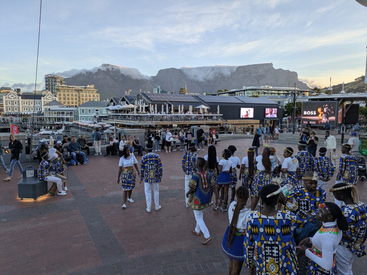 Abends geht es dann zum Essen an die Victoria Wharf. Der Tafelberg spuckt immer noch Wolken.