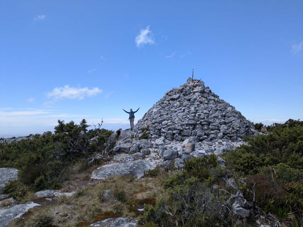 Ein großer Cairn markiert die ansonsten unauffällige Stelle.