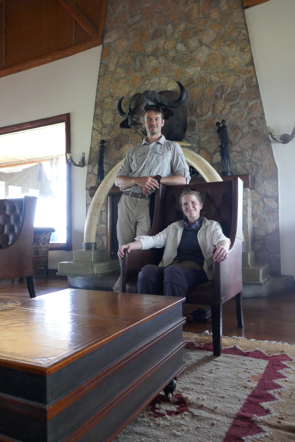 Das Ambiente der Lodge läßt uns wie Großwildjäger im britischen Kolonialstil fühlen, und wir nutzen den "Thronsessel"