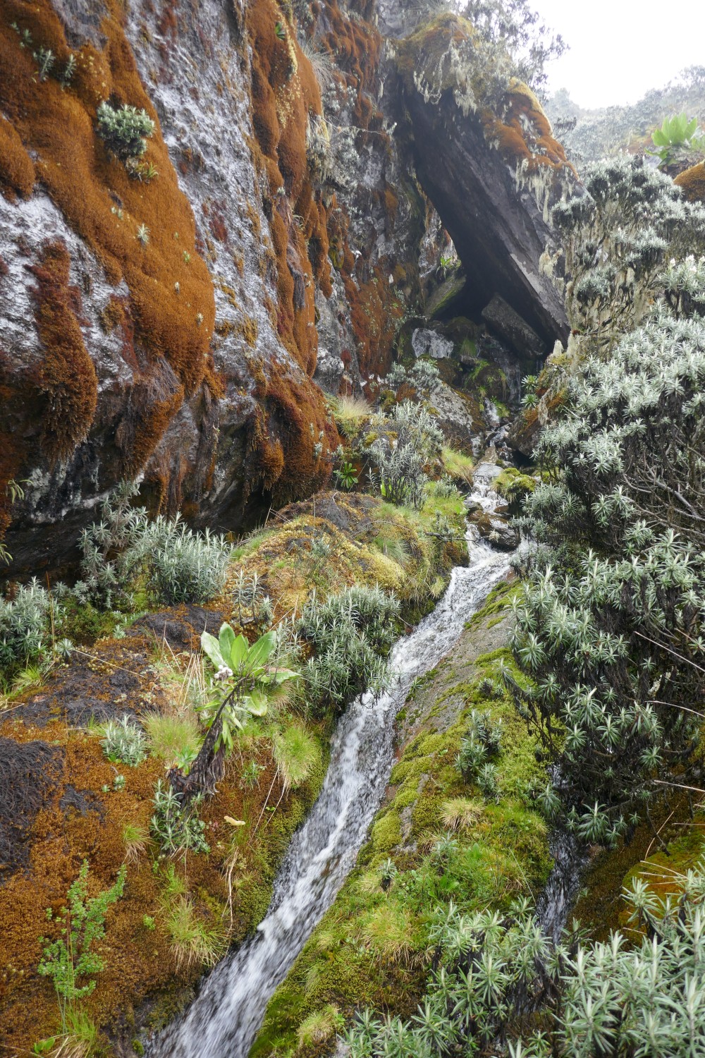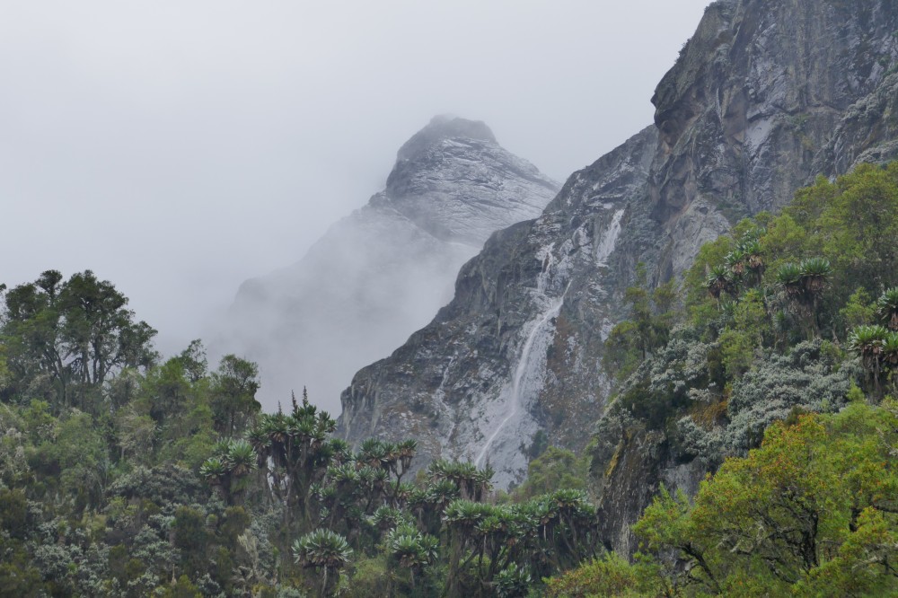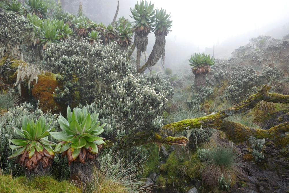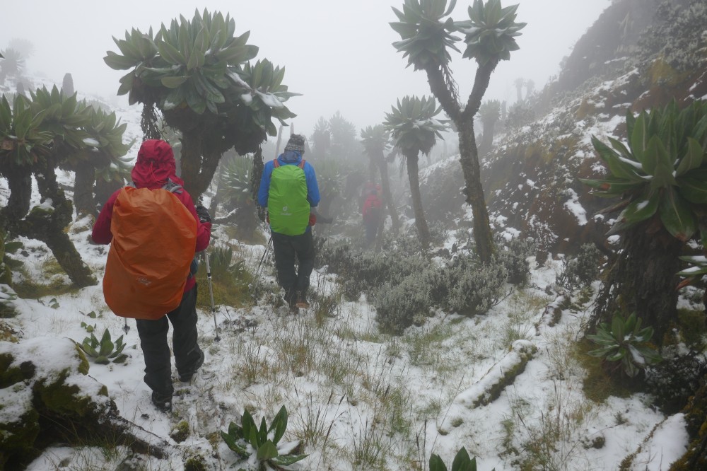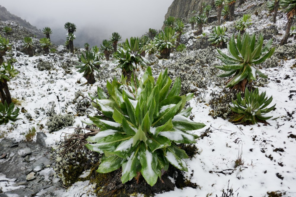 Bald erreichen wir wieder die Schneegrenze - Lobelien in weißem Gold.