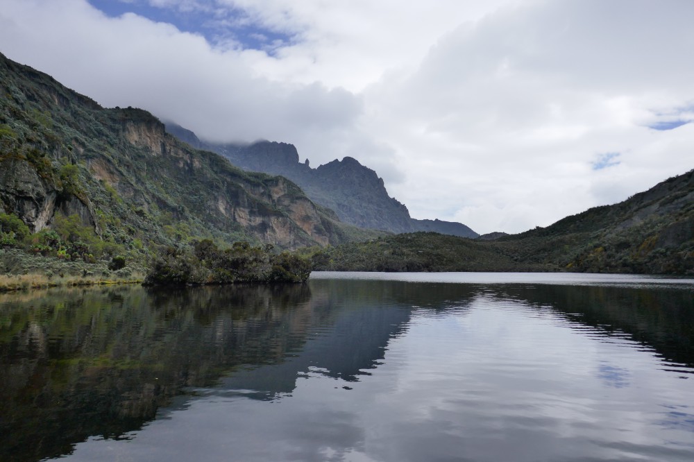 Auch der Kitandara-See auf ca. 4000 Hm ist eine Augenweide. Verwunschen liegt er im Dschungel zwischen schroffen Bergspitzen. In der