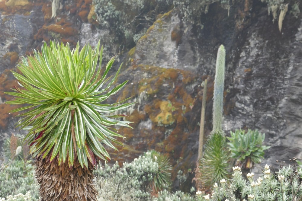 Die letzten Meter zur Hütte stehen uns wieder Lobelien Spalier.