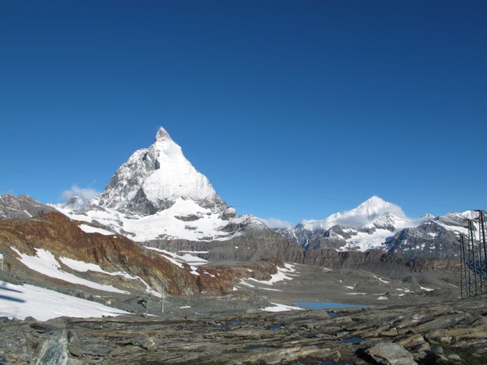 Aufstieg zum Allalinhorn, Blick zu Breit- und Matterhorn