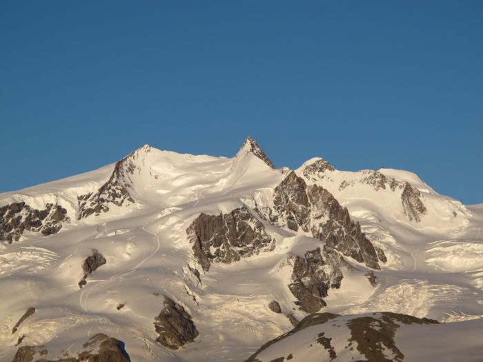 Aussicht vom Breithorn; von links: Dent Blanche, Obergabelhorn, Zinalrothorn und Weisshorn