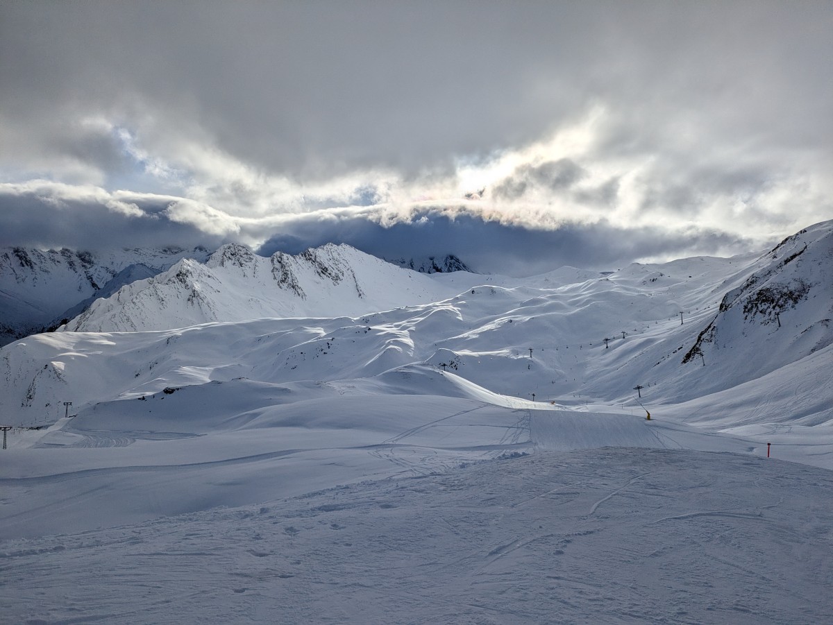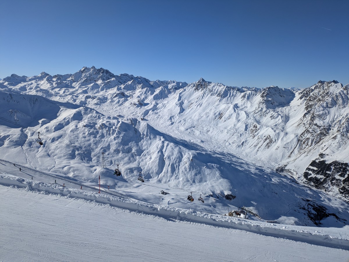 Mit den Kollegen geht es vor Weihnachten dann wieder in den Schnee - wobei von letztgenanntem auch in Ischgl, unserem Talort, nicht viel zu sehen ist. Immerhin sind die Pisten im Skigebiet dank der Schnekanonen in passablem Zustand. Wir rauschen mit einem Grinsen im Gesicht die teilweise durchaus steilen Abschnitte herunter.