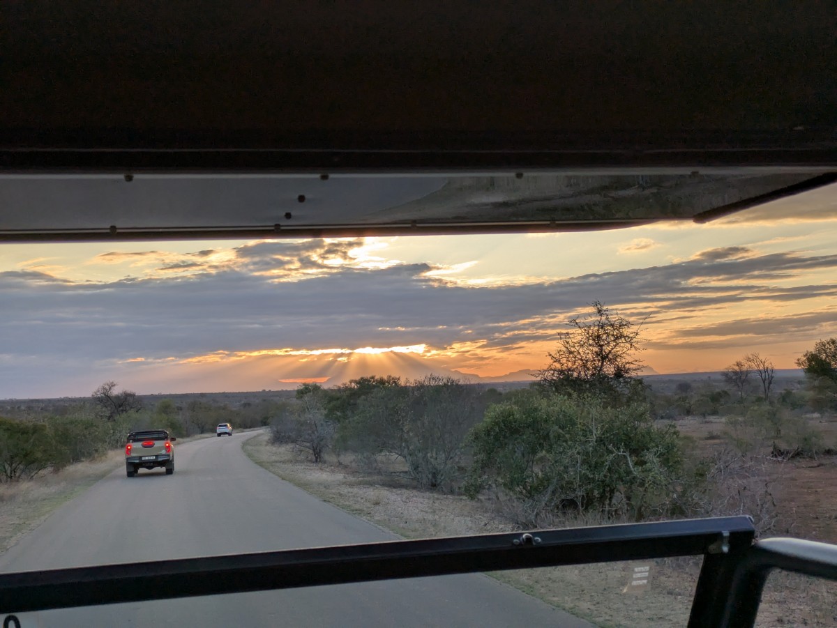 Ein wunderbarer Sonnenuntergang begleitet uns zurück zur Wild Olive Tree Lodge.