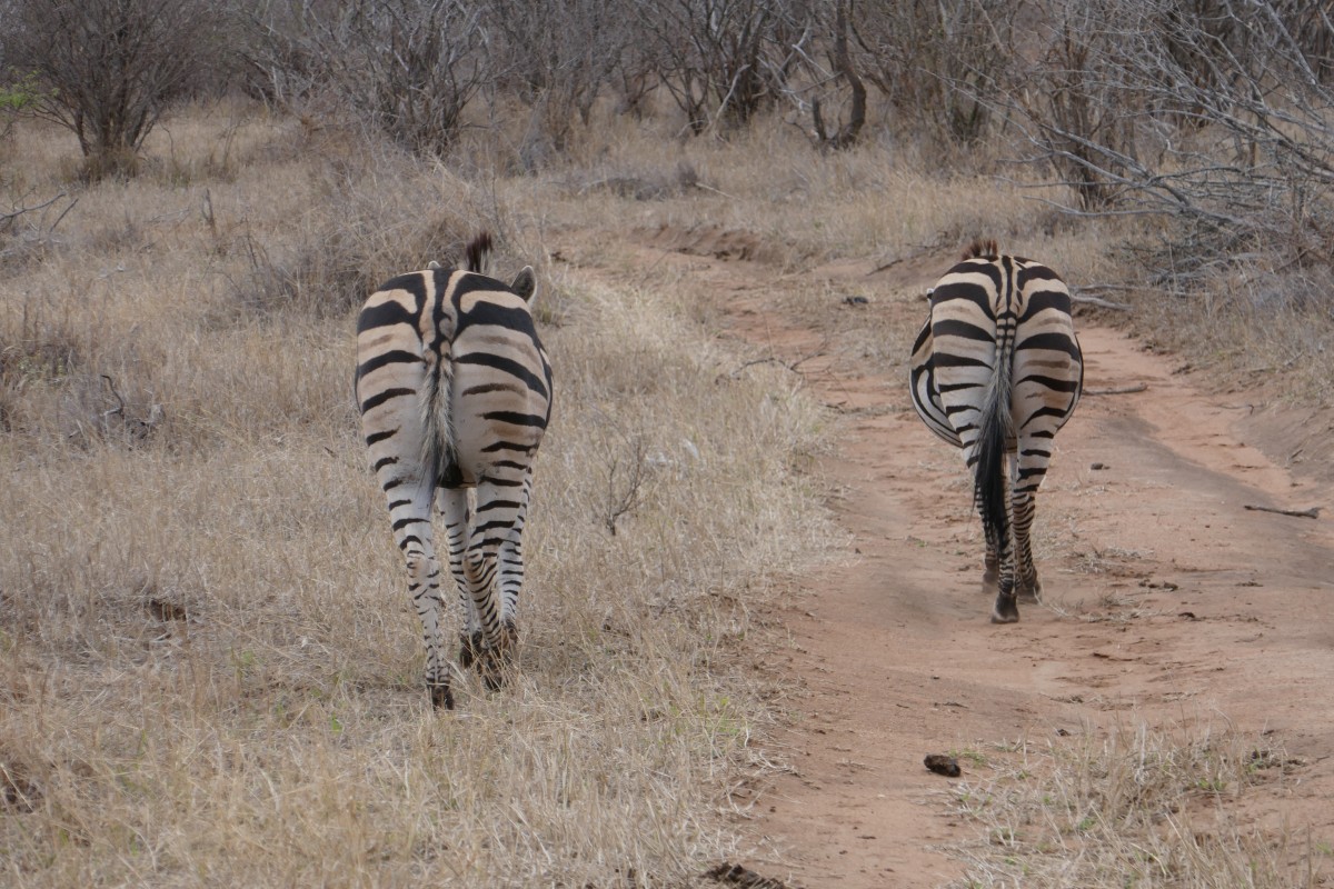 Wir zuckeln langsam hinter zwei Zebra-Hintern hinterher.
