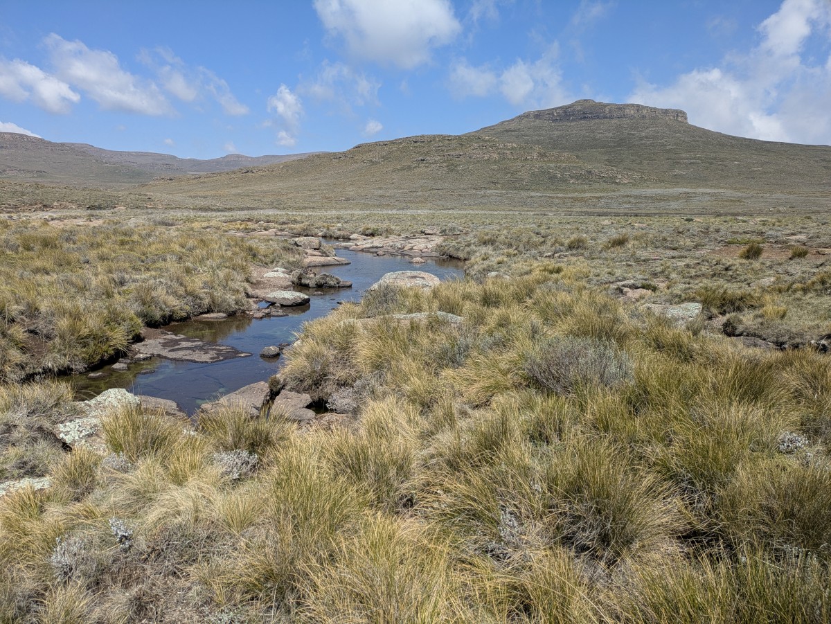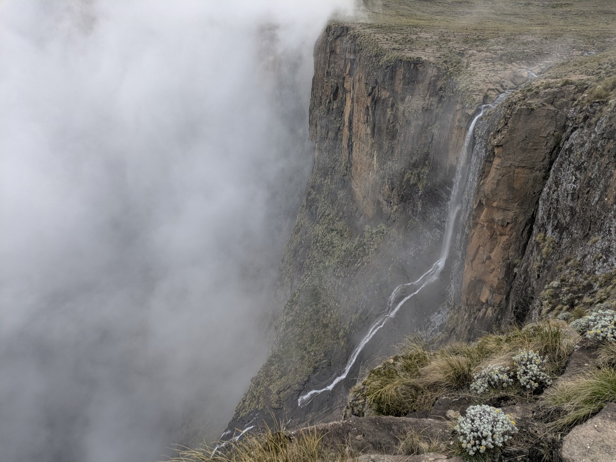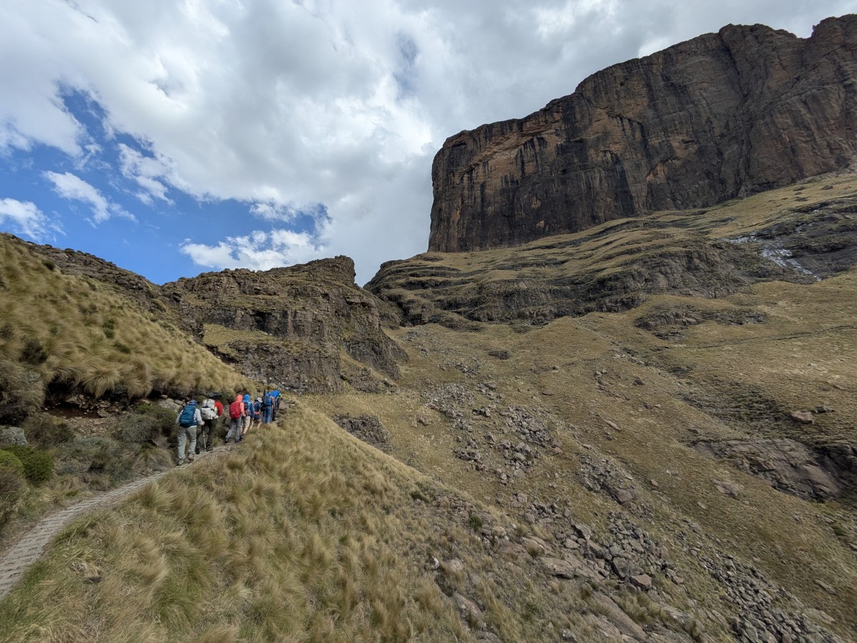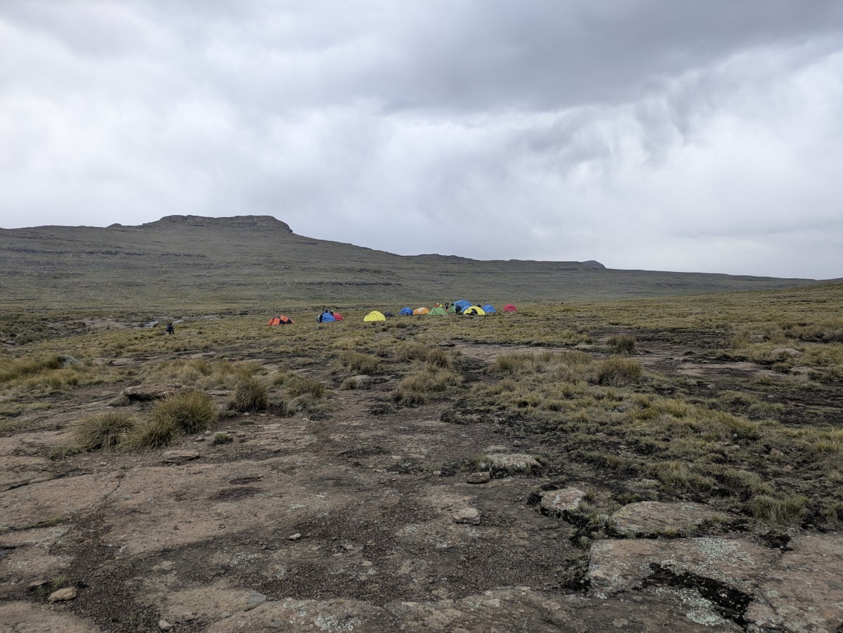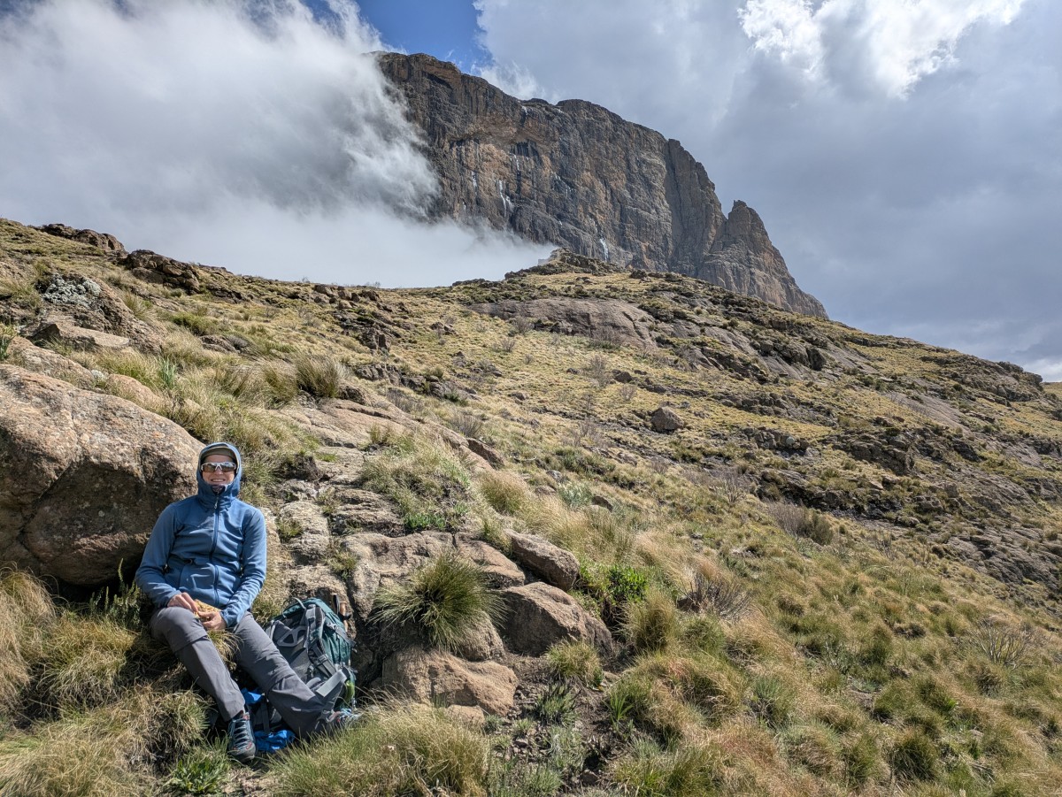 Endlich sind wir auf dem Hochplateau der Drakensberge angekommen, also auf um die 3000 Meter über Meer. Auf dieser Höhe wird uns die Tour über die nächsten vier Tage weiterführen. Die Blicke hinab in die Steilabbrüche sind ungemein reizvoll.