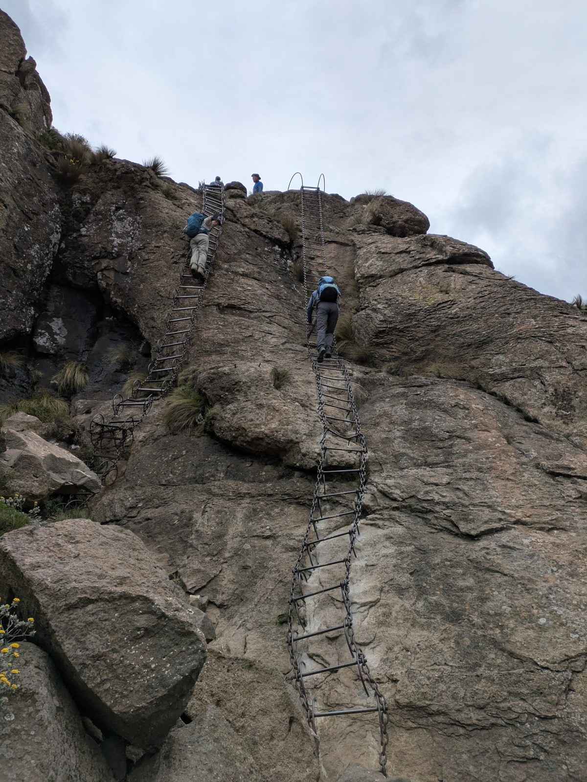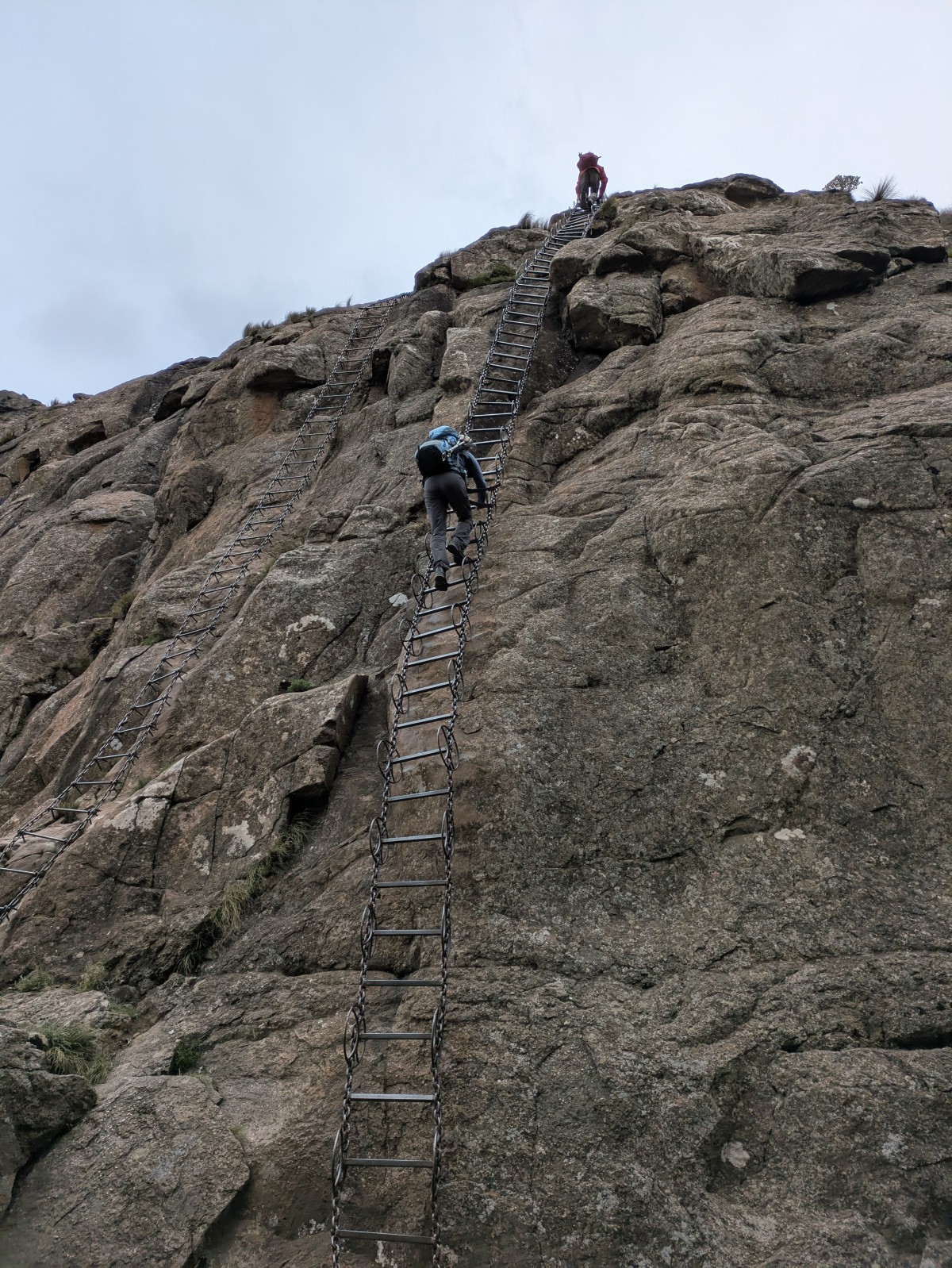 Wir überwinden die erste Leiter bei durchaus starkem Wind.