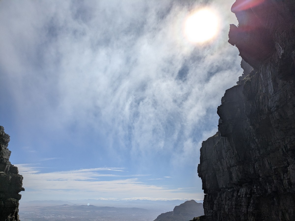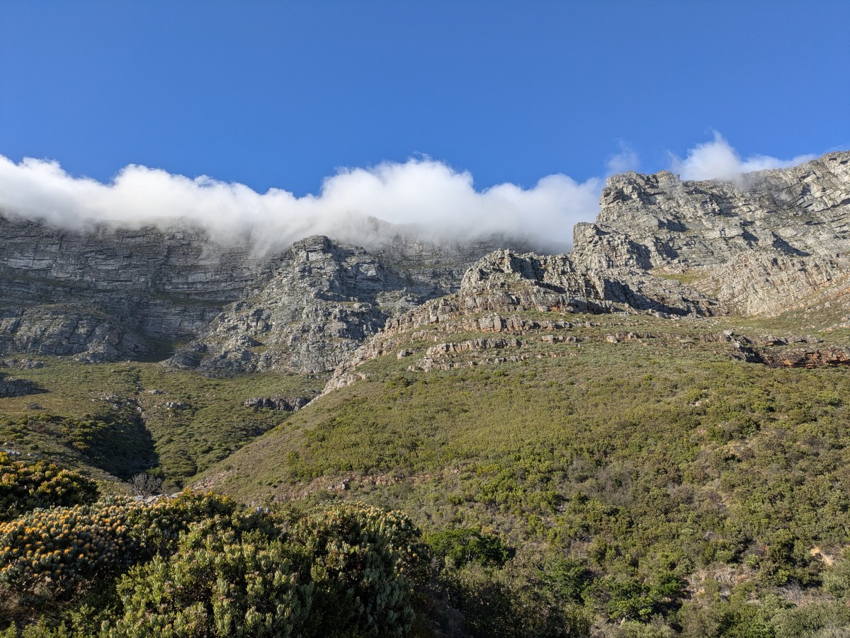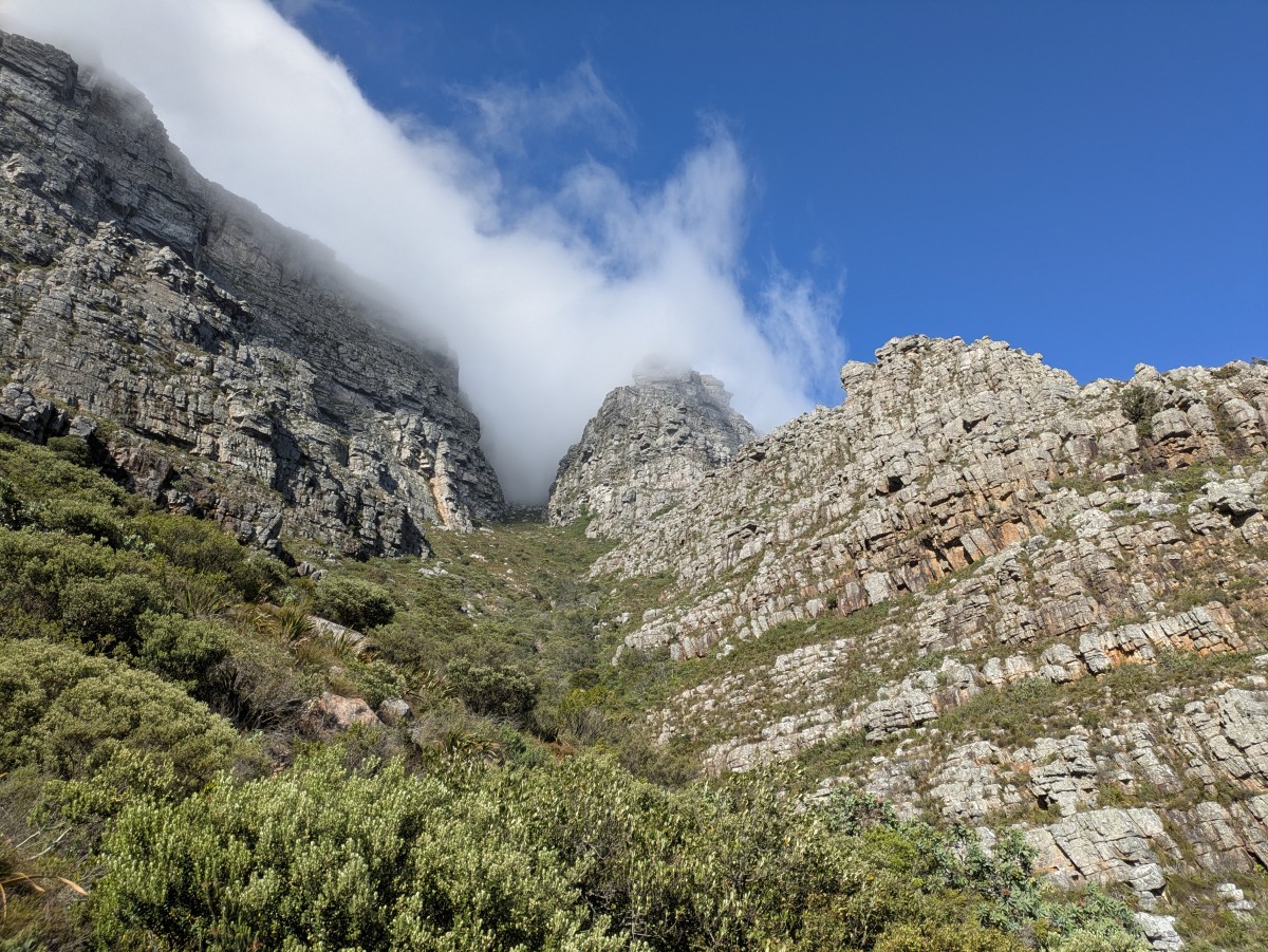 ...und außerdem haben wir das Glück, daß sich die Wolke am Gipfelplateau des Tafelberges aufgelöst hat, als wir oben ankommen